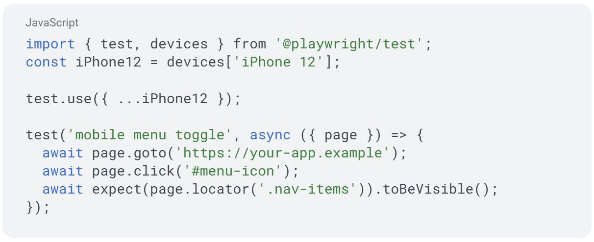 A good practice is to combine Playwright emulation for quick coverage with real-device cloud testing for final validation.